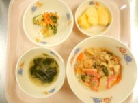 本日の給食は… *中華丼 〈米・豚もも肉・バナメイエビ・いか・白菜・人参・玉ねぎ・干し椎茸・ピーマン・たけのこ・なると・ごま油・おろしにんにく・水・中華だしの素・醤油・オイスターソース・酒・みりん・片栗粉〉 *ブロッコリーのナムル 〈ブロッコリー・コーン・人参・木綿豆腐・ごま油・中華だしの素・醤油・ごま〉 *わかめスープ 〈わかめ・もやし・ねぎ・中華だしの素・醬油・ごま油〉 *パイン 本日のおやつは… ◆牛乳 ◆メロンパン 〈強力粉・塩・三温糖・バター・牛乳・ドライイースト・小麦粉・三温糖・バター・牛乳・ ...