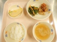 本日の給食は・・・ *ごはん *チキンチキンごぼう 〈鶏もも肉・ごぼう・片栗粉・塩・醤油・みりん・三温糖〉 *ほうれん草と厚揚げの和え物 〈ほうれん草・にんじん・厚揚げ・醤油・三温糖・すりごま・ごま油〉 *みそ汁 〈白みそ・煮干しだし汁・里芋・キャベツ〉 *りんご 本日のおやつは・・・ ◆牛乳 ◆フルーツの生クリーム和え 〈生クリーム・三温糖・ヨーグルト・いちご・パイン缶・みかん缶・白桃缶〉