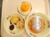 本日の給食は・・・ *もち 〈もち米・こしあん・きな粉・三温糖・塩・醤油・三温糖〉 *雑煮汁 〈鶏もも肉・大根・にんじん・ごぼう・干ししいたけ・なると・油揚げ・かつお昆布だし・醤油・酒・みりん・塩〉 *みかん 本日のおやつは・・・ ◆牛乳 ◆ツナサンド 〈コッペパン・ツナ・マヨドレ・醤油・三温糖〉
