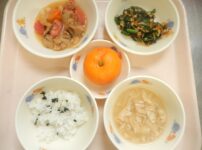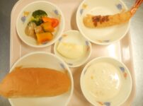 本日の給食は… ◆コッペパン ◆エビフライ 〈えび・塩・米粉・パン粉・油〉 ◆温野菜サラダ 〈南瓜・ブロッコリー・赤ピーマン・塩・すりごま・マヨドレ・味噌・酢・三温糖・ごま油〉 ◆コーンポタージュ 〈クリームコーン缶・コーン・米粉・バター・牛乳・コンソメ・塩〉 ◆りんご 本日のおやつは… 〇麦茶 〇小松菜のだしおにぎり 〈米・小松菜・天かす・ほんだし・しょうゆ・三温糖・ごま油・昆布だし〉 本日のもぐもぐ期離乳食は… ◇粥 ◇かぼちゃとしらすの煮物 〈南瓜・しらす・しょうゆ・三温糖〉 ◇ゆでブロッコリー ◇ ...