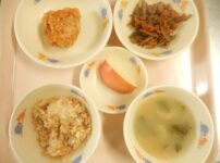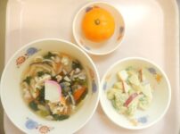 本日の給食は… *鮭節ごはん 〈米・鮭節・みりん・三温糖・醤油・塩・ごま〉 *鶏の竜田揚げ 〈鶏もも肉・おろし生姜・醤油・みりん・三温糖・片栗粉・なたね油〉 *きんぴらごぼう 〈ごぼう・人参・ごま油・醤油・みりん・三温糖・酒・黒ごま〉 *みそ汁 〈小松菜・ちくわ・しめじ・煮干しだし汁・白みそ〉 *りんご 本日のおやつは… ◆牛乳 ◆カレービーフン 〈ビーフン・豚バラ肉・キャベツ・人参・ピーマン・おろししょうが・なたね油・塩・中華だしの素・醤油・カレー粉〉 本日の中期離乳食は… ○粥 ○鶏肉の煮物 〈鶏肉・ ...