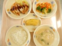 本日の給食は… *ごはん *とんかつ 〈豚ヒレ肉・小麦粉・塩・水・パン粉・なたね油・中濃ソース・ケチャップ・三温糖・キャベツ〉 *ブロッコリーのサラダ 〈ブロッコリー・人参・コーン・醤油・酢・三温糖・なたね油〉 *きのこのみそ汁 〈えのきたけ・しめじ・絹ごし豆腐・油揚げ・万能ねぎ・白みそ・煮干しだし汁〉 *バナナ 本日のおやつは… ◆牛乳 ◆メロンパン風スコーン 〈ホットケーキ粉・バター・三温糖・牛乳・グラニュー糖〉 本日の中期離乳食は… 〇粥 〇豆腐の煮物 〈絹ごし豆腐・人参・かつおだし〉 〇ゆでブロッ ...
