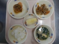本日の給食は・・・ *ごはん *鶏肉のみぞれ煮 〈鶏肉・片栗粉・大根・醤油・三温糖・みりん・生姜・かつお昆布だし・万能ねぎ〉 *きんぴらごぼう 〈ごぼう・にんじん・豚肉・ごま油・三温糖・みりん・醤油・酒・ごま〉 *みそ汁 〈白みそ・煮干しだし汁・ほうれん草・さといも・油揚げ〉 *りんご 本日のおやつは・・・ ◆牛乳 ◆さくらんぼゼリー 〈さくらんぼ缶・アセロラジュース・粉寒天・三温糖〉 本日のもぐもぐ期の給食は・・・ *粥 *鶏肉のみぞれ煮 〈鶏肉・醤油・三温糖・片栗粉・大根〉 *にんじんの和え物 〈にん ...