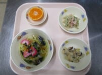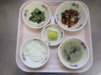 本日の給食は… *牛丼 〈米・牛もも・牛ばら・白菜・しらたき・たまねぎ・人参・ねぎ・おろししょうが・しょうゆ・酒・三温糖・みりん〉 *小松菜のガーリック炒め 〈小松菜・人参・しめじ・コーン・オリーブ油・にんにく・コンソメ・塩〉 *みそ汁 〈白みそ・煮干だし汁・ちくわ・あおさ・じゃがいも〉 *オレンジ 本日のおやつは… ◇牛乳 ◇照り焼きチキントースト 〈食パン・鶏もも肉・おろししょうが・しょうゆ・みりん・三温糖・マヨドレ・とろけるチーズ・焼きのり〉 本日のもぐもぐ期離乳食は… ◆軟飯 ◆牛肉の煮物 〈牛肉 ...