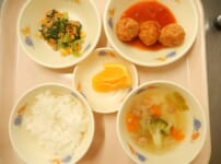 本日の給食は… *ミートボール 〈豚ひき肉・高野豆腐・玉ねぎ・塩・パン粉・トマト缶・ケチャップ・にんにく・三温糖・中濃ソース〉 *小松菜とツナのサラダ 〈小松菜・人参・コーン・ツナ水煮・オリーブ油・塩〉 *ポトフ 〈ブロッコリー・キャベツ・人参・ウインナー・じゃがいも・洋風だしの素・塩〉 *オレンジ 本日のおやつは… ◆牛乳 ◆りんごゼリー 〈りんごジュース・三温糖・アガー〉 本日のかみかみ期給食は… 〇ミートボール 〈豚ひき肉・高野豆腐・玉ねぎ・塩・パン粉・トマト缶・三温糖・しょうゆ〉 〇小松菜とツナの ...