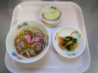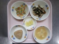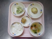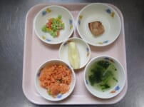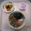 本日の給食は… *ごはん *チーズつくね <鶏ひき肉・焼き豆腐・玉ねぎ・れんこん・片栗粉・マヨドレ・おろししょうが・酒・鶏ガラ・塩・こしょう・油・みりん・砂糖・酒・チーズ> *青のり粉ふき芋 <じゃがいも・塩・青のり> *三平汁 <鮭・大根・人参・ねぎ・つきこんにゃく・小松菜・かつお昆布だし・塩> *バナナ 本日のおやつは… ◆牛乳 ◆シュガークレープ <ホットケーキミックス・牛乳・バター・グラニュー糖・粉糖> 本日のもぐもぐ期の離乳食は… 〇粥 〇鮭の煮物 <鮭・小松菜・じゃがいも> 〇大根スティック ...