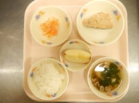 本日の給食は・・・ *にんじんごはん 〈米・にんじん・白だし・コンソメ・バター〉 *トマトの煮込みハンバーグ 〈豚ひき肉・牛ひき肉・玉ねぎ・塩・パン粉・牛乳・ケチャップ・中濃ソース・みりん・酒・にんにく・ホールトマト缶・バター・コンソメ〉 *野菜のオーブン焼き 〈赤ピーマン・かぼちゃ・ブロッコリー・塩・ガーリックパウダー・オリーブ油〉 *白菜とコーンのスープ 〈白菜・コーン・しめじ・コンソメ・塩〉 *フルーツポンチ 〈パイン缶・みかん缶・いちご・みかん缶液汁〉 本日のおやつは・・・ ◆牛乳 ◆じゃこチップ ...