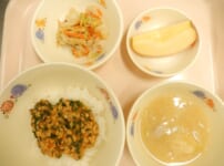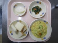 本日の給食は… *ごはん *炒め納豆 〈ひきわり納豆・豚ひき肉・玉ねぎ・人参・ねぎ・にら・醤油・みりん・三温糖・なたね油〉 *白菜のしらす和え 〈白菜・ちくわ・人参・しらす干し・醤油・三温糖・酢・なたね油〉 *みそ汁 〈白みそ・煮干しだし汁・玉ねぎ・里芋〉 *りんご 本日のおやつは… ◆牛乳 ◆ヨーグルトムース 〈ヨーグルト・生クリーム・グラニュー糖・水・ゼラチン・ビスケット・バター〉 本日のかみかみ期離乳食は… 〇軟飯 〇炒め納豆 〈ひきわり納豆・豚ひき肉・玉ねぎ・人参・ねぎ・にら・醤油・三温糖・なたね ...