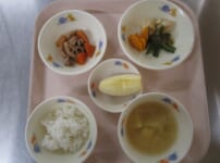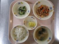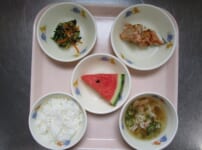 本日の給食は… *ごはん *鮭の西京焼き <鮭・みそ・みりん・マヨドレ・砂糖・塩> *三色おひたし <ほうれん草・白菜・人参・かつお節・しょうゆ> *そうめん汁 <かつお節・昆布・塩・しょうゆ・みりん・ソーメン・ハム・オクラ・長ねぎ> *すいか 本日のおやつは… ◆牛乳 ◆さつまいもレモン煮 <さつまいも・レモン汁・砂糖・塩> 本日のかみかみ期の離乳食は… ★軟飯 ★鮭のみそ焼き <鮭・みそ> ★三色おひたし <ほうれん草・白菜・人参・かつお節・しょうゆ> ★そうめん汁 <かつお節・昆布・しょうゆ・ねぎ・ ...