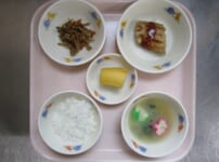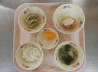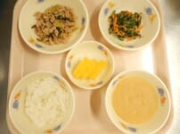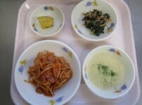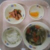 本日の給食は… *ごはん *チキン南蛮 <鶏肉・酒・小麦粉・片栗粉・油・醤油・酢・みりん・三温糖・マヨドレ・玉葱・三温糖・醤油・酢> *キャベツとしらすの和え物 <キャベツ・しらす・人参・油・酢・三温糖・塩> *みそ汁(小松菜・里芋・ねぎ) *オレンジ 本日のおやつは… ◆牛乳 ◆ぶどうゼリー <ぶどうジュース・三温糖・寒天・水> 本日のかみかみ期の離乳食は… 〇軟飯 〇チキン南蛮湯通し <鶏肉・塩・小麦粉・片栗粉・油・醤油・三温糖・玉ねぎ> 〇キャベツとしらすの和え物 <キャベツ・しらす・人参・油・塩> ...