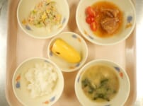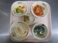 本日の給食は… *きのこのクリームドリア <米・コーン・バター・ケチャップ・しいたけ・エリンギ・玉ねぎ・豚ひき肉・牛乳・生クリーム・バター・スキムミルク・小麦粉・コンソメ・酒・塩・こしょう・チーズ> *野菜のオーブン焼き <人参・じゃがいも・ミニトマト・しめじ・ブロッコリー・塩・こしょう・オリーブ油・おろしにんにく> *オニオンスープ <玉ねぎ・バター・水・塩・コンソメ・パセリ> *フルーツゼリー <みかん缶・パイン缶・水・砂糖・寒天> 本日のおやつは… ◆牛乳 ◆お麩きな粉 <麩・バター・きな粉・砂糖・ ...