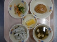 本日の給食は… *食パン *かれいのムニエル <かれい・塩・こしょう・小麦粉・バター> *ポテトサラダ <じゃがいも・人参・ハム・きゅうり・マヨドレ・塩・砂糖> *野菜チャウダー <玉ねぎ・人参・キャベツ・ブロッコリー・バター・小麦粉・コンソメ・塩・こしょう・水・豆乳・粉チーズ> *パイン缶 本日のおやつは… ◆牛乳 ◆そばめし <やきそばめん・米・キャベツ・人参・小松菜・油・中濃ソース・お好み焼きソース・ケチャップ・砂糖・あおのり・天かす> 本日のごっくん期の離乳食は… 〇パン粥 〇かれい・ブロッコリー ...