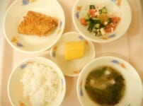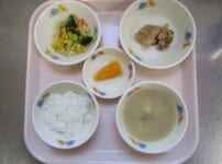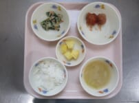 本日の給食は・・・ *にんじんごはん 〈米・にんじん・白だし・コンソメ・バター〉 *トマトの煮込みハンバーグ 〈豚ひき肉・牛ひき肉・玉ねぎ・塩・パン粉・牛乳・ケチャップ・中濃ソース・みりん・酒・にんにく・ホールトマト缶・バター・コンソメ〉 *野菜のオーブン焼き 〈赤ピーマン・かぼちゃ・ブロッコリー・塩・ガーリックパウダー・オリーブ油〉 *白菜とコーンのスープ 〈白菜・コーン・しめじ・コンソメ・塩〉 *フルーツポンチ 〈パイン缶・みかん缶・いちご・みかん缶液汁〉 本日のおやつは・・・ ◆牛乳 ◆じゃこチップ ...