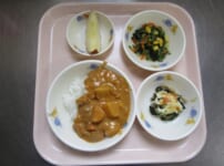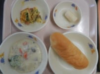 本日の給食は… *コッペパン *クリームシチュー 〈鶏もも肉・じゃが芋・玉ねぎ・人参・しめじ・ブロッコリー・バター・牛乳・スキムミルク・コンソメ・塩・小麦粉〉 *南瓜サラダ 〈南瓜・玉ねぎ・きゅうり・ベーコン・マヨドレ・三温糖・塩〉 *バナナ 本日のおやつは… ◆牛乳 ◆さつまいも餅 〈さつま芋・片栗粉・牛乳・塩・とろけるチーズ・バター・醤油・三温糖・みりん〉 本日のごっくん期離乳食は… 〇粥 〇絹ごし豆腐 〇ブロッコリー 〇南瓜 〇スープ 本日のもぐもぐ期離乳食は… 〇粥 〇クリームシチュー 〈鶏肉・玉 ...