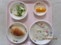 本日の給食は… *ごはん *みそ汁(大根・なめこ) *鶏肉とごぼうのからめ煮 <鶏肉・片栗粉・ごぼう・片栗粉・油・しょうゆ・砂糖・酒・みりん・ピーマン> *ブロッコリーののり和え <ブロッコリー・キャベツ・人参・のり・しょうゆ> *パイン缶 本日のおやつは… ◆牛乳 ◆豆腐のパンケーキ <豆腐・米粉・豆乳・ベーキングパウダー・砂糖・油> 本日のかみかみ期の離乳食は… ☆軟飯 ☆みそ汁(大根・なめこ) ☆鶏の唐揚げの湯通し <鶏肉・片栗粉> ☆ブロッコリーののり和え <ブロッコリー・キャベツ・人参・のり・し ...