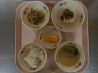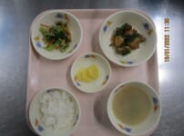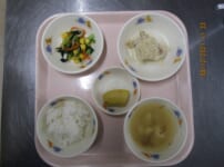 本日の給食は… *ごはん *みそ汁(大根・なめこ) *鶏肉とごぼうのからめ煮 <鶏肉・片栗粉・ごぼう・片栗粉・油・しょうゆ・砂糖・酒・みりん・ピーマン> *ブロッコリーののり和え <ブロッコリー・キャベツ・人参・のり・しょうゆ> *パイン缶 本日のおやつは… ◆牛乳 ◆豆腐のパンケーキ <豆腐・米粉・豆乳・ベーキングパウダー・砂糖・油> 本日のかみかみ期の離乳食は… ☆軟飯 ☆みそ汁(大根・なめこ) ☆鶏の唐揚げの湯通し <鶏肉・片栗粉> ☆ブロッコリーののり和え <ブロッコリー・キャベツ・人参・のり・し ...