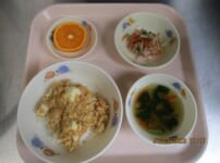 本日の給食は… *チャイニーズチキンバーガー 〈中力粉・ドライイースト・塩・三温糖・牛乳・バター・ごま・鶏もも肉・塩・酒・しょうが・にんにく・小麦粉・片栗粉・なたね油・醤油・三温糖・酢・みりん・レタス・マヨドレ〉 *コーンツナサラダ 〈コーン・小松菜・ツナ水煮・人参・三温糖・塩・酢・なたね油〉 *ミネストローネ 〈トマトジュース・じゃが芋・ブロッコリー・人参・玉ねぎ・ウインナー・塩・コンソメ・三温糖〉 *カルピスフルーツポンチ 〈パイン缶・みかん缶・いちご・カルピス〉 本日のおやつは… ◆牛乳 ◆みそ焼き ...