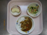 本日の給食は… *きのこのクリームドリア <米・コーン・バター・ケチャップ・しいたけ・エリンギ・玉ねぎ・豚ひき肉・牛乳・生クリーム・バター・スキムミルク・小麦粉・コンソメ・酒・塩・こしょう・チーズ> *野菜のオーブン焼き <人参・じゃがいも・ミニトマト・しめじ・ブロッコリー・塩・こしょう・オリーブ油・おろしにんにく> *オニオンスープ <玉ねぎ・バター・水・塩・コンソメ・パセリ> *フルーツゼリー <みかん缶・パイン缶・水・砂糖・寒天> 本日のおやつは… ◆牛乳 ◆お麩きな粉 <麩・バター・きな粉・砂糖・ ...