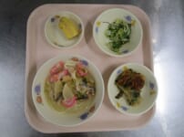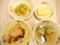 本日の給食は… *ホタテドリア 〈米・ターメリック・ほうれん草・たまねぎ・しめじ・コーン・ほたて・油・牛乳・バター・小麦粉・洋風だしの素・塩・とろけるチーズ〉 *フレンチサラダ 〈キャベツ・人参・きゅうり・三温糖・酢・オリーブ油・塩〉 *コンソメスープ 〈ブロッコリー・玉ねぎ・ウインナー・水・洋風だしの素・塩〉 *パイン 本日のおやつは… ◆牛乳 ◆レーズンスコーン 〈小麦粉・ベーキングパウダー・三温糖・レーズン・油・牛乳・コーンフレーク〉 本日のかみかみ期給食は… 〇軟飯 〇グラタン 〈ほうれん草・玉ね ...
