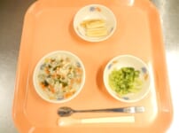 本日の給食は… *ごはん *豚肉の塩こうじ炒め <豚バラ肉・豚もも肉・キャベツ・玉葱・ピーマン・米麹・塩・油> *ひじきの炒め煮 <ひじき・人参・つきこんにゃく・ちくわ・れんこん・油揚げ・しょうゆ・みりん・酒・砂糖・かつおだし・油> *みそ汁(木綿豆腐・ほうれん草・なめこ) *オレンジ 本日のおやつは… ◆牛乳 ◆もちもちおやき <白玉粉・絹ごし豆腐・ホットケーキミックス・こしあん・油> 本日のカミカミ期の離乳食は… 〇軟飯 〇豚肉の煮物 <豚肉・キャベツ・玉葱・ピーマン・塩・油> *ひじきの炒め煮 <ひ ...