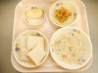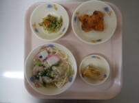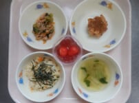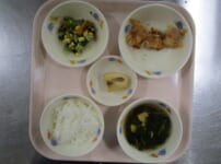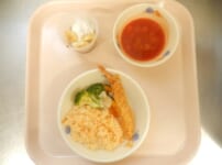 本日の給食は… *人参ごはん 〈米・にんじん・白だし・洋風だしの素・バター〉 *えびフライ 〈バナメイエビ・塩・小麦粉・水・パン粉・なたね油〉 *蒸し野菜 〈南瓜・ブロッコリー・塩・すりごま・マヨドレ・酢・三温糖・ごま油〉 *ミネストローネ 〈水・トマトジュース・ホールトマト缶・キャベツ・にんじん・玉ねぎ・じゃが芋・塩・洋風だしの素・三温糖〉 *チョコバナナ風パフェ 〈ココア・三温糖・牛乳・生クリーム・ゼラチン・バナナ・生クリーム・グラニュー糖〉 本日のおやつは… ◆牛乳 ◆のりトースト 〈食パン・焼きの ...
