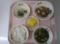 本日の給食は… *ごはん *すき焼き風煮 <牛もも肉・牛バラ肉・焼き豆腐・人参・さやえんどう・しらたき・ねぎ・干ししいたけ・かつお昆布だし・酒・みりん・醤油> *長いもの梅和え <長いも・きゅうり・うめびしお・めんつゆ・塩・かつお節> *みそ汁(あおさ・ちくわ) *パイン 本日のおやつは… ◆牛乳 ◆ババロア <牛乳・カルピス・ゼラチン・水> 本日のモグモグ期の離乳食は… 〇軟飯 〇焼き豆腐の煮物 <焼き豆腐・人参・ブロッコリー> 〇かぼちゃマッシュ 〇スープ 本日のカミカミ期の離乳食は… 〇軟飯 〇すき ...
