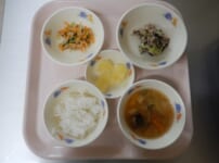 本日の給食は… *ごはん *鮭の西京焼き <鮭・みそ・みりん・マヨドレ・砂糖・塩> *三色おひたし <ほうれん草・白菜・人参・かつお節・しょうゆ> *そうめん汁 <かつお節・昆布・塩・しょうゆ・みりん・ソーメン・ハム・オクラ・長ねぎ> *すいか 本日のおやつは… ◆牛乳 ◆さつまいもレモン煮 <さつまいも・レモン汁・砂糖・塩> 本日のかみかみ期の離乳食は… ★軟飯 ★鮭のみそ焼き <鮭・みそ> ★三色おひたし <ほうれん草・白菜・人参・かつお節・しょうゆ> ★そうめん汁 <かつお節・昆布・しょうゆ・ねぎ・ ...