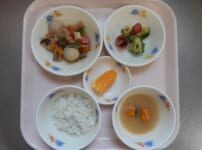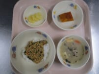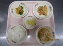 本日の給食は… *醤油ラーメン <生中華麺・豚もも肉・豚バラ肉・ほうれん草・きゃべつ・もやし・にんじん・かまぼこ・ねぎ・ごま油・鳥がらだし汁・かつお昆布だし汁・中華だしの素・しょうゆ・塩> *小松菜のごま和え <小松菜・にんじん・しめじ・さとう・しょうゆ・塩・すりごま> *やきいも <さつまいも> *りんご 本日のごっくん期の離乳食は… ○つぶしうどん ○ほうれん草 ○さつまいも ○高野豆腐 ○スープ 本日のかみかみ期の離乳食は… ○和風うどん <うどん・豚もも肉・豚バラ肉・きゃべつ・にんじん・鶏がらだし ...