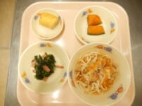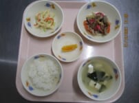 本日の給食は… *ごはん *鮭のみそチーズ焼き 〈さけ・塩・白みそ・三温糖・みりん・とろけるチーズ・パセリ粉〉 *マカロニサラダ 〈マカロニ・りんご・みかん缶・ハム・マヨドレ・三温糖・塩〉 *オニオンスープ 〈たまねぎ・小松菜・バター・水・塩・洋風だしの素〉 *オレンジ 本日のおやつは… ◆牛乳 ◆さつまいもパン 〈強力粉・ドライイースト・三温糖・塩・バター・牛乳・さつまいも・三温糖・牛乳・粉糖・水・黒ごま〉 本日のもぐもぐ期の離乳食は… 〇軟飯 〇鮭の煮物 〈鮭・水・塩〉 〇さつま芋マッシュ 〇スープ ...