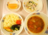 本日の給食は・・・ *コッペパン *チキンのトマトソースグラタン 〈鶏肉・しめじ・ほうれん草・玉ねぎ・マカロニ・ホールトマト缶・バター・小麦粉・スキムミルク・牛乳・ケチャップ・とろけるチーズ・パン粉〉 *コールスロー 〈キャベツ・にんじん・コーン・塩・酢・三温糖〉 *白菜のコンソメスープ 〈白菜・ウインナーソーセージ・にんじん・塩・コンソメ〉 *パイン 本日のおやつは・・・ ◆麦茶 ◆ツナマヨおにぎり 〈米・ツナ缶・三温糖・醤油・かつお節・マヨドレ〉 本日のかみかみ期の給食は・・・ *コッペパン *チキン ...