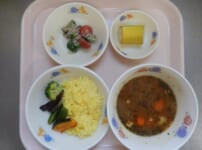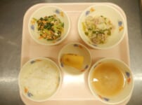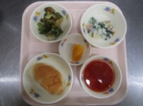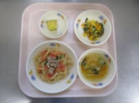本日の給食は… *トマトとさばの冷製パスタ <スパゲティ・さば・トマト・きゅうり・オリーブ油・レモン汁・塩・こしょう・しょうゆ・砂糖> *チンゲン菜とコーンの炒め物 <チンゲンサイ・にんじん・コーン・オリーブ油・塩・洋風だしの素> *ポトフ <キャベツ・にんじん・玉ねぎ・小松菜・水・塩・洋風だしの素> *バナナ 本日のおやつは… ◆焼きビーフン <ビーフン・豚肉・えび・キャベツ・人参・ピーマン・油・塩・鶏ガラ・醤油> ◆牛乳 本日のモグモグ期の離乳食は… ○つぶしうどん ○野菜のツナ和え <にんじん・たま ...