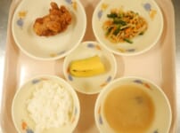 本日の給食は・・・ *ごはん *から揚げ 〈鶏もも肉・醤油・酒・生姜・にんにく・米粉・片栗粉・油〉 *もやしのカレーソテー 〈もやし・ハム・小松菜・人参・油・カレー粉・醤油・塩〉 *みそ汁(大根・しめじ) *バナナ 本日のおやつは・・・ ◆牛乳 ◆コーンフレーククッキー 〈小麦粉・バター・三温糖・レーズン・コーンフレーク・スキムミルク〉 本日のごっくん期離乳食は・・・ 〇つぶし粥 〇高野豆腐 〇大根 〇小松菜 〇スープ 本日のもぐもぐ期離乳食は・・・ 〇粥 〇鶏肉の煮物 〈鶏肉・小松菜・人参・醤油・三温糖 ...