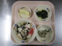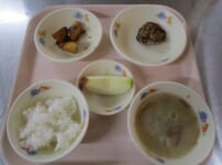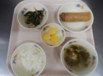 本日の給食は… *ごはん *春巻き <春巻きの皮・豚肉・たけのこ・にら・人参・ねぎ・春雨・おろししょうが・醤油・酒・三温糖・鶏ガラ・オイスターソース・みりん・油> *ナムル <ほうれん草・もやし・人参・ごま油・鶏ガラ・ごま油・醤油> *わかめスープ <わかめ・鶏むね肉・玉葱・ねぎ・鶏ガラ・水・醤油・ごま油> *パイン 本日のおやつは… ◆牛乳 ◆ミートパイ <パイシート・豚挽き肉・玉葱・ケチャップ・ソース・三温糖・塩・チーズ> 本日のごっくん期の離乳食は… 〇つぶし粥 〇しらす 〇ほうれん草 〇玉葱 〇ス ...