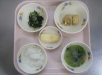 本日の給食は… *パエリア <米・めんつゆ・酒・みりん・水・トマトピューレ・えび・玉葱・あさり・いか・にんにく・オリーブ油・コンソメ> *マカロニサラダ <マカロニ・人参・きゅうり・マヨドレ・醤油・塩・三温糖> *コンソメスープ(コーン・小松菜) *バナナ 本日のおやつは… ◆牛乳 ◆さつまいものパウンドケーキ <さつまいも・三温糖・ヨーグルト・バター・ホットケーキミックス> 本日のごっくん期の離乳食は… 〇つぶし粥 〇高野豆腐 〇小松菜 〇人参 〇スープ 本日のかみかみ期の離乳食は… 〇しらすごはん < ...