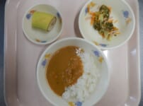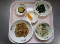 本日の給食は… *チャイニーズチキンバーガー <中力粉・ドライイースト・塩・さとう・牛乳・バター・牛乳・ごま・鶏もも肉・塩・酒・片栗粉・米粉・油・しょうゆ・さとう・酢・みりん・レタス・マヨドレ> *ラキポテ <じゃがいも・片栗粉・油・塩・牛乳・小麦粉・とろけるチーズ・洋風だしの素・中濃ソース・ケチャップ・中華だしの素・小麦粉・さとう・粉チーズ・塩・洋風だしの素> *小松菜のソテー <小松菜・コーン・バター・塩> *マカロニスープ <マカロニ・にんじん・たまねぎ・じゃがいも・ブロッコリー・洋風だしの素・さと ...