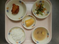 本日の給食は・・・ *ごはん *鶏のから揚げ 〈鶏もも肉・生姜・にんにく・醤油・みりん・三温糖・塩・片栗粉・米粉〉 *小松菜としらすの和え物 〈小松菜・にんじん・しらす・三温糖・醤油〉 *みそ汁 〈煮干だし汁・白みそ・さつまいも・玉ねぎ〉 *バナナ 本日のおやつは・・・ ◆牛乳 ◆くるくる春巻き 〈春巻きの皮・しらす・とろけるチーズ・焼きのり・オリーブ油・小麦粉〉 本日のごっくん期の給食は・・・ *粥 *しらす *小松菜 *にんじん *スープ 本日のもぐもぐ期の給食は・・・ *粥 *鶏肉の煮物 〈鶏肉・醤 ...