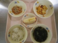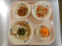 本日の給食は… *ごはん *ザンギ <鶏もも肉・しょうゆ・酒・塩・おろししょうが・おろしにんにく・片栗粉・小麦粉・水・油> *きのこと春雨の中華サラダ <春雨・しめじ・まいたけ・きゅうり・しょうゆ・さとう・酢・中華だしの素・ごま油・ごま> *つくねスープ <干ししいたけ・鶏ひき肉・片栗粉・オイスターソース・小松菜・白菜・ねぎ・水・中華だしの素・しょうゆ・さとう・塩・ごま油> *パイン 本日のかみかみ期の離乳食は… ○ごはん ○ザンギ <鶏もも肉・しょうゆ・片栗粉・小麦粉・水・油> ○きのこと春雨の中華サラ ...
