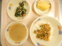 本日の給食は… *ごぼうごはん 〈米・ごぼう・鶏もも肉・人参・しょうゆ・酒・みりん・和風だしの素・塩〉 *鮭のから揚げ 〈鮭・おろししょうが・酒・しょうゆ・片栗粉・小麦粉・なたね油〉 *ひじきの炒め煮 〈切干大根・ひじき・人参・こんにゃく・油揚げ・枝豆・しょうゆ・みりん・酒・三温糖・和風だしの素・なたね油〉 *みそ汁 〈白みそ・煮干だし汁・ほうれん草・じゃが芋〉 *りんご 本日のおやつは… ◆牛乳 ◆イタリアンポンデケージョ 〈白玉粉・トマトジュース・とろけるチーズ・なたね油・三温糖・塩〉 本日のもぐもぐ ...