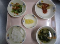本日の給食は… *ご飯 *チキンナゲット 〈鶏ひき肉・木綿豆腐・おろしにんにく・おろししょうが・中華だしの素・マヨドレ・塩・小麦粉・片栗粉・油・ケチャップ〉 *ほうれん草のマヨ和え 〈ほうれん草・かまぼこ・人参・コーン・しょうゆ・みりん・かつお昆布だし汁・マヨドレ・三温糖〉 *みそ汁 〈白みそ・煮干だし汁・じゃがいも・カットわかめ〉 *りんご 本日のおやつは… ◆牛乳 ◆ライスペーパーお好み焼き 〈ライスペーパー・キャベツ・豚もも肉・絹ごし豆腐・和風だし・片栗粉・米粉・油・かつお節・青のり・マヨドレ・お好 ...