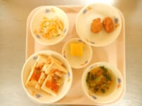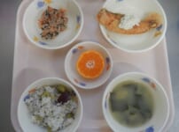 本日の給食は… *ツナチーズトースト 〈食パン・ツナ水煮・マヨドレ・ケチャップ・とろけるチーズ〉 *チキンナゲット 〈鶏ひき肉・木綿豆腐・おろしにんにく・おろししょうが・中華だしの素・マヨドレ・塩・小麦粉・片栗粉・油〉 *コールスロー 〈キャベツ・人参・コーン・油・塩・酢・三温糖〉 *野菜スープ 〈人参・大根・小松菜・塩・洋風だしの素〉 *パイン 本日のおやつは… ◆牛乳 ◆五平餅 〈米・片栗粉・みそ・三温糖・すりごま〉 (0・1歳児は白米で提供しています。) 本日のかみかみ期給食は… 〇ツナチーズトース ...