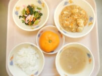 本日の給食は… *ごはん *麻婆豆腐 〈木綿豆腐・豚ひき肉・人参・玉ねぎ・ねぎ・おろしにんにく・おろししょうが・ごま油・醤油・中華だしの素・白みそ・三温糖・片栗粉・水〉 *小松菜の中華サラダ 〈小松菜・人参・かまぼこ・中華だしの素・醤油・塩・ごま油〉 *豚もやしスープ 〈豚もも肉・もやし・玉ねぎ・おろしにんにく・おろししょうが・水・ごま油・中華だしの素・塩・白みそ〉 *みかん 本日のおやつは… ◆牛乳 ◆バターコーンのせトースト 〈食パン・コーン・バター・醤油・マヨドレ〉 本日のかみかみ期の給食は… ○軟 ...