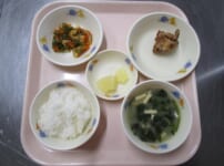 本日の給食は… *食パン *かれいのムニエル <かれい・塩・こしょう・小麦粉・バター> *ポテトサラダ <じゃがいも・人参・ハム・きゅうり・マヨドレ・塩・砂糖> *野菜チャウダー <玉ねぎ・人参・キャベツ・ブロッコリー・バター・小麦粉・コンソメ・塩・こしょう・水・豆乳・粉チーズ> *パイン缶 本日のおやつは… ◆牛乳 ◆そばめし <やきそばめん・米・キャベツ・人参・小松菜・油・中濃ソース・お好み焼きソース・ケチャップ・砂糖・あおのり・天かす> 本日のごっくん期の離乳食は… 〇パン粥 〇かれい・ブロッコリー ...