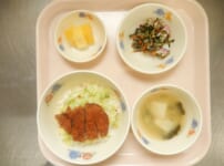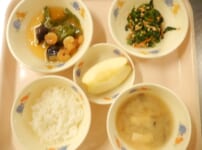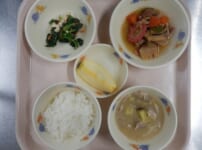 本日の給食は… *ご飯 *揚げナスの海老煮 〈なす・ピーマン・高野豆腐・米粉・なたね油・えび・玉ねぎ・かつお昆布だし汁・醤油・酒・みりん・おろししょうが・片栗粉〉 *ほうれん草の納豆和え 〈ほうれん草・ひきわり納豆・人参・醤油・三温糖・焼きのり〉 *みそ汁 〈煮干しだし汁・白みそ・油揚げ・玉ねぎ・椎茸・キャベツ〉 *りんご 本日のおやつは… ◆牛乳 ◆きなこおはぎ 〈米・水・こしあん・きな粉・三温糖・塩〉 本日のかみかみ期離乳食は… 〇軟飯 〇揚げナスと高野豆腐の煮物 〈なす・ピーマン・高野豆腐・米粉・な ...