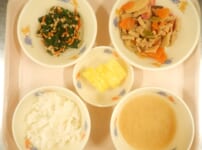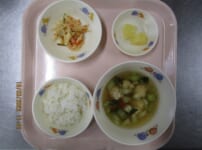 本日の給食は… *ごはん *炒り鶏 〈鶏もも肉・高野豆腐・干ししいたけ・玉ねぎ・ごぼう・人参・たけのこ・板こんにゃく・なると・さやえんどう・しょうゆ・みりん・酒・三温糖〉 *ほうれん草の納豆和え 〈ほうれん草・ひきわり納豆・人参・しょうゆ・三温糖・焼きのり〉 *みそ汁 〈油揚げ・大根・白みそ・煮干しだし汁〉 *パイン 本日のおやつは… ◆牛乳 ◆ボンボローニ 〈強力粉・三温糖・塩・ドライイースト・かぼちゃ・牛乳・バター・なたね油・生クリーム・グラニュー糖〉 本日のもぐもぐ期離乳食は… 〇粥 〇炒り鶏 〈鶏 ...
