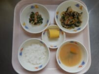 本日の給食は・・・ *ごはん *さばのしょうが煮 〈さば・しょうが・しょうゆ・砂糖・酒・みりん〉 *スパゲティサラダ 〈スパゲティ・ブロッコリー・コーン・人参・しょうゆ・砂糖・酢・油・ごま油〉 *みそ汁(もやし・ふのり) *りんご 本日のおやつは・・・ ◆牛乳 ◆オレンジ ◆きな粉クッキー 〈薄力粉・きな粉・バター・砂糖・粉砂糖〉 本日のカミカミ期離乳食は・・・ ■軟飯 ■さばのしょうが煮 〈さば・生姜・しょうゆ・砂糖〉 ■スパゲティサラダ 〈スパゲティ・ブロッコリー・人参・塩〉 ■みそ汁(もやし) ■ ...