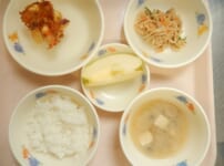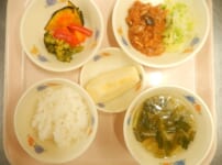 本日の給食は… *ごはん *ポークチャップ 〈豚肩ロース肉・豚もも肉・塩・米粉・玉ねぎ・しめじ・なたね油・中濃ソース・ケチャップ・みりん・キャベツ・塩〉 *野菜のオーブン焼き 〈人参・赤ピーマン・南瓜・ブロッコリー・塩・ガーリックパウダー・オリーブ油〉 *みそ汁 〈白みそ・煮干しだし汁・にら・絹ごし豆腐・鶏むね肉〉 *りんご 本日のおやつは… ◆牛乳 ◆大学芋 〈さつま芋・塩・なたね油・醤油・三温糖・みりん・水・黒ごま〉 本日のかみかみ期離乳食は… 〇軟飯 〇豚肉の炒め物 〈豚肩ロース肉・豚もも肉・塩・玉 ...