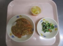 本日の給食は… *ごはん *カツカレー <鶏肉・塩・小麦粉・水・パン粉・油・豚肉・玉ねぎ・人参・じゃがいも・油・バター・牛乳・水・スキムミルク・ケチャップ・ソース> *キャベツとしらすの和え物 <キャベツ・しらす・人参・小松菜・油・酢・砂糖・塩> *フルーツポンチ <みかん缶・白桃缶・パイン缶・バナナ> 本日のおやつは… ◆牛乳 ◆チーズトースト <食パン・バター・粉チーズ> 本日のごっくん期の離乳食は… 〇つぶし粥 〇しらす・人参 〇じゃがいも 〇スープ 本日のもぐもぐ期の離乳食は… 〇粥 〇しらすのあ ...