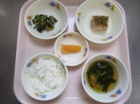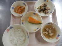 本日の給食は… *コッペパン *メンチカツ <豚ひき肉・キャベツ・高野豆腐・片栗粉・酒・塩・こしょう・マヨドレ・パン粉・油・ソース・ケチャップ・牛乳・水> *ジャーマンポテト <じゃがいも・玉ねぎ・ウインナー・バター・塩・こしょう・おろしにんにく・コンソメ> *ミネストローネ <しめじ・玉ねぎ・マカロニ・おろしにんにく・オリーブ油・トマトピューレ・コンソメ・塩・砂糖> *パイン缶 本日のおやつは… ◆牛乳 ◆焼きおにぎり <米・しょうゆ・かつおだし・ごま油> 本日のカミカミ期の離乳食は… 〇コッペパン 〇 ...