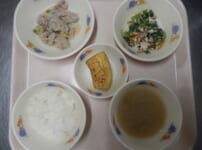 本日の給食は… *ごはん *豚肉のから揚げ <豚ヒレ肉・醤油・酒・みりん・おろしにんにく・おろししょうが・片栗粉・小麦粉・油・キャベツ・きゅうり・人参・塩> *ジャーマンポテト <じゃがいも・ウインナー・ベーコン・にんにく・油・コンソメ・塩・パセリ> *みそ汁(もやし・まいたけ・小松菜) *みかん 本日のおやつは… ◆牛乳 ◆ヨーグルトムース <ヨーグルト・生クリーム・グラニュー糖・ゼラチン・水・レモン汁・ビスケット・バター> 本日のかみかみ期の離乳食は… 〇ごはん 〇豚肉のから揚げ湯通し <豚ヒレ肉・醤 ...