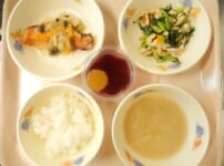 本日の給食は… *わかめごはん *豆腐の甘酢団子 〈豚ひき肉・木綿豆腐・たまねぎ・おろししょうが・塩・パン粉・たまねぎ・にんじん・ピーマン・油・ケチャップ・しょうゆ・三温糖・酢・中華だしの素・片栗粉〉 *きゅうりとささみのごまサラダ 〈鶏ささみ・きゅうり・にんじん・しょうゆ・酢・三温糖・すりごま・ごま油〉 *みそ汁(キャベツ・えのき) *パイン 本日のおやつは… ◆牛乳 ◆ピザチップス 〈餃子の皮・ケチャップ・三温糖・バジル粉・おろしにんに・ピーマン・ウインナーソーセージ ・たまねぎ・コーン・とろけるチー ...